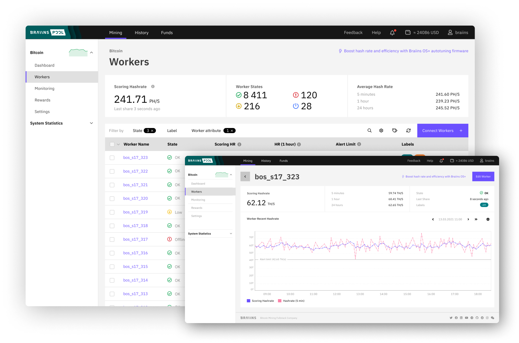 Increase hashrate on your Bitcoin ASICs, improve efficiency as much as 25%, and mine on any pool or get 0% pool fees on Braiins Pool.
